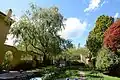 As the path is followed from the bridge the character of the garden changes once more to the gentle slopes, well grassed and dominated by stands of deciduous trees such as maples, poplars and birch before the patterns back to itself to climb a hill through drifts of rhododendron and azaleas back to the driveway.[1][3]