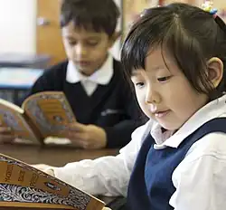 The Lower School includes kindergarten through 4th grade. Education focuses on introductory mathematics, phonics-based reading, history, science, physical education, art, music, French, Latin, and Bible study.[8]