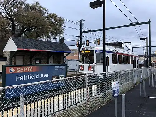 Fairfield Avenue station is a SEPTA Metro light rail station in Upper Darby Township, Pennsylvania. It is served by both services (D1 and D2) of the D. The station is located in a private right-of-way and has two side platforms. A stone shelter is located on the outbound (westbound) platform.[1]