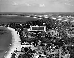 The San Juan Intercontinental opened on February 1, 1958, operated by the Intercontinental Hotels division of Pan Am.[2] It was constructed at a cost of $7.5 million by the San Juan Hotel Corporation and was designed by Miami-based architect Roy F. France, with G. Fernos Lopez serving as the San Juan-based consulting architect.[3] The 16-acre resort had 320 rooms and boasted the largest convention hall in Latin America. The hotel's Tropicoro nightclub and adjoining casino were designed by Cuban architect Max Borges Jr., in a style similar to his earlier Tropicana Club in Havana.[4]