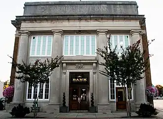 The Farmers State Bank is a historic commercial building at 1001 Front Street in Conway, Arkansas. It is a two-story masonry structure in the Classical Revival style. Its side walls are finished in brick, and most of its facade is in stone. The dominant feature of the facade are four massive engaged Tuscan columns, which support an entablature, cornice, and parapet. The main entrance is set in the central bay, with a bracketed hood above. It was designed by Thompson & Harding and built about 1918.[2]