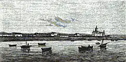 Lapa Lighthouse and temple as seen from Póvoa Bay around 1868