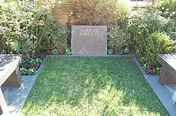 A private funeral was held in Los Angeles on June 30, 2009.[90] Farrah's son Redmond was permitted to leave his California detention center to attend the service, where he gave the first reading. Fawcett is interred at the Westwood Village Memorial Park in Los Angeles, next to Rodney Dangerfield.[91][92]