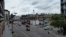 Amongst the notable buildings on Farringdon Road are the former headquarters of The Guardian newspaper at Nos. 119–141,[3] the so-called Zeppelin Building at No. 61 built in 1917 after a Zeppelin raid during World War I, and the western side of Smithfield Market.