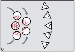 FCC proponents argue that menstruation became a key problem because it potentially creates conflicts between the females and conflicts between males. Menstruation has little social impact among chimpanzees or bonobos, since visible oestrus swellings are the focus of male attention. But once external signs of ovulation had been phased out in the human lineage, according to FCC, menstruation became salient as the one remaining external promise of fertility. Potentially, dominant males might exploit such information, repeatedly targeting newly cycling females at the expense of pregnant or nursing mothers (figure e). Those who might lose male investment needed to take control. According to FCC, older and more experienced females did this by initiating newly cycling females into their kin-based coalitions (figures f, g). Red ochre pigments allowed women to take conscious control over their signals, resisting any dominant male strategy of picking and choosing between them on biological grounds.[27][28] It is argued that because precise, sustained menstrual synchrony is difficult to achieve, painting up with blood-red pigments was the next best thing, enabling the benefits of artificial, ritually constructed synchrony.[29]