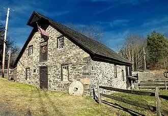 The Fenner–Snyder Mill, also known as Brinker's Mill and the Old Mill, is a historic grist mill located on the McMicheal's creek in the village of Sciota in Hamilton Township, Monroe County, Pennsylvania. The mill was built in 1730, and is a large 2+1⁄2-story fieldstone and sided banked building. It has a tin roof added about 1860. It was in continuous milling operation until mid-April 1954.[2] In 1974, the mill was donated to Hamilton Township with the understanding that it would be used for “historical, cultural, and governmental purposes.”[3]