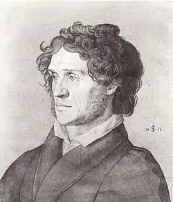 Between 1807 and 1810 he was employed on a diplomatic mission to Paris in the service of Prince Leopold Friedrich Franz von Anhalt-Dessau.[1] While there he often visited the Louvre, particularly admiring the works of Northern Renaissance artists such as Jan van Eyck and Hans Memling, who had a profound effect on his style.[2] While still in Paris he painted, in collaboration with his brother Heinrich, two works for the chapel on the Prince's estate at Wörlitz[3] and began a life-sized portrait of Napoleon on his horse, which he seems only to have finished after leaving the city.[1]