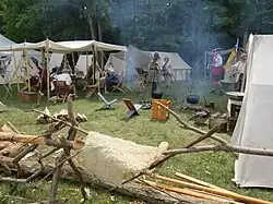 Each year members of about 50 Scottish clans set up tents to display the history of their families. Traditional Scottish food and music are also available for the attendees, as well as whisky tasting, quilting, horse shoeing, weaving and genealogical displays. Storytellers and historical re-enactments provide additional entertainment. There are also activities for children, including sword fighting and archery.[7]