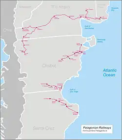 Ferrocarriles Patagónicos network as of 1936:[1]