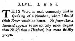 - ^ "fewer or less". The Cambridge Guide to English Usage. Cambridge University Press. 2004. p. 205. ISBN 978-0-521-62181-6.