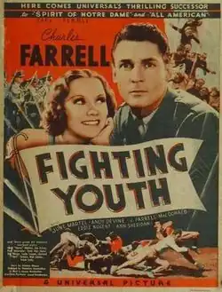 Fighting Youth is a 1935 American drama film directed by Hamilton MacFadden and written by Henry Johnson, Hamilton MacFadden and newspaper reporter Florabel Muir. The film stars Charles Farrell, June Martel, Andy Devine, J. Farrell MacDonald, Ann Sheridan and Edward Nugent. The film was released on November 1, 1935, by Universal Pictures.[1][2][3]
