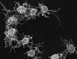There are currently cultures from two filasterean species: Capsaspora owczarzaki and Ministeria vibrans, the first isolated from within a fresh-water snail, the second a marine, free-living bacteriovore. The complete genome sequences of C. owczarzaki,[5] M. vibrans, Pigoraptor vietnamica and Pigoraptor chileana[6] have been obtained. Comparative analyses have shown that Filasterea are key to unravel the genetic repertoire of the unicellular ancestor of animals and to provide insights into the origin of Metazoa. Metabarcoding analyses of 18S ribosomal RNA in marine environments have failed to recover other filasterean representatives,[7][8] suggesting this clade may not be especially abundant in natural ecosystems.