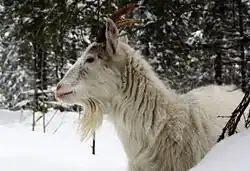 The Finnish Landrace, also called the Finngoat (Finnish: Suomenvuohi),[1] is a landrace-derived breed of goat originating in western Finland. The breed can come in a variety of colors but is usually grey, pied, or white, and both horned and polled individuals occur.[2] Finnish Landrace goats are typically used for milking,[3] as there is not a strong tradition of goat meat in Finnish cuisine, unlike in southern Europe.[4] Finngoats are the only breed of goat native to Finland, and originate from native goats crossed with other European imports, especially from Switzerland.[1]