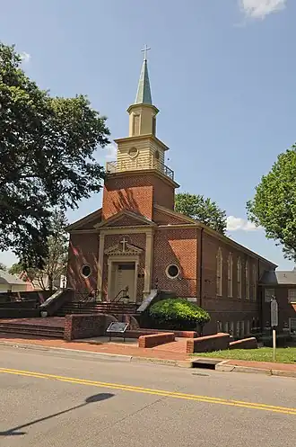 The congregation was founded in the 1770s as a non-denominational group of free and enslaved African-Americans, and became officially Baptist in 1781, led by Gowan Pamphlet, an ordained slave.[2] At the time of its founding, African-Americans could not own property; a structure was instead provided for them on the land of a white tradesman, Jesse Cole, with the understanding that it would be used as a place of worship.[3] This building was destroyed by a tornado in 1834, and replaced by a larger structure erected in 1856.[2] John M. Dawson was the pastor for over forty-five years and was also a Virginia state senator between 1874 and 1877 during the Reconstruction Era.[4]