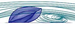 Analyzing the three components of the scale it can be concluded that the base of the denticle does not come into contact with any portion of the fluid flow.[39] The crown and the neck of the denticles however play a key role and are responsible for creating the turbulent vortices and eddies found near the skin's surface.[39] Because denticles come in so many different shapes and sizes, it can be expected that not all shapes will produce the same type of turbulent flow. During a recent research experiment biomimetic samples of shark denticles with a crescent like microstructure were tested in a water tank using a traction table as a slide. The experiment showed that the surface with denticles experienced a 10% drag reduction overall versus the smooth sample. The reason for this drag reduction was that the turbulent vortices became trapped between the denticles, creating a ‘cushion like’ barrier against the laminar flow.[40] This same type of experiment was performed by another research group which implemented more variation in their biomimetic sample. The second group arrived at the same conclusion as the first. However, because their experiment contained more variation within the samples they were able to achieve a high degree of experimental accuracy. In conclusion, they stated that more practical shapes were more durable than ones with intricate ridge-lines. The practical shapes were low profile and contained trapezoidal or semi-circular trough-like cross sections, and were less effective but nonetheless reduced drag by 6 or 7%.[41]