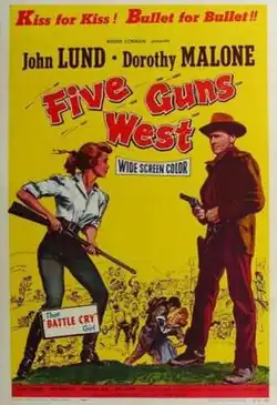 Five Guns West is a 1955 Western film set during the American Civil War directed by Roger Corman. It was Corman's first film as director although he had already made two as producer. It was the second film released by the American Releasing Company, which later became American International Pictures.[5]
