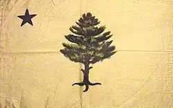 | Design | Green pine tree on a buff field with a blue star in the canton. |
