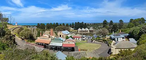 Flagstaff Hill Maritime Village is located in Warrnambool, a regional city on the south-western coast of Victoria, Australia. The museum is built on Flagstaff Hill that also holds the original lighthouses and Warrnambool Garrison.