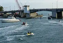 The John's Pass Bridge is a twin-span double-leaf bascule bridge that crosses the John's Pass, connecting Madeira Beach and Treasure Island, Florida. The bascule bridge carries Gulf Boulevard, part of SR 699. The southbound span of the Johns Pass Bridge was built in 2008, and the northbound span was built in 2010.[4][5]