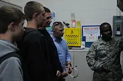 SSgt Khaalis shows cadets from the Clearwater Composite Squadron how the Charleston AFB Nondestructive Inspection shop uses x-rays to detect cracks, delaminations, voids, processing defects and heat damage on aircraft structures and parts.