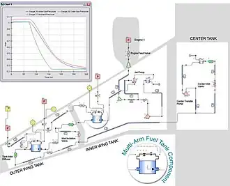 Flowmaster is a general purpose 1D computational fluid dynamics (CFD) code for modeling and analysis of fluid mechanics in complex piping and ducting systems of any scale. It is a thermo-fluid systems engineering package that has the ability to simulate flows of gases and liquids, heat and mass transfer, moving bodies, two-phase flows and fluid-structure interaction (FSI) through computational modeling algorithms. It uses a Method of Characteristics solver that allows it to handle accurately fluid transients in complex systems and systems-of-systems such as pressure surge and ‘water hammer’. It also has an advanced gas turbine secondary air modeling capability.[6]