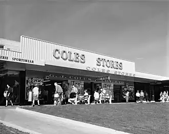 Pratt and company were eager to open a supermarket at Forest Hill, but the promising deal came with a catch: Pratts could occupy the site if they arranged for McEwans Hardware to lease a large adjacent store. This turned out to be relatively easy as the Pratts Group had previous dealings with McEwans management. Once this was finalised, the developers secured the Moores department store chain to be the third anchor tenant.[28] Australian Safeway Limited, the Australian division of America's famous Safeway chain of supermarkets, partnered with Pratts to open the first "Safeway" branded supermarket in the country at Forest Hill. This had 12 checkout points and a staff of more than 50 assistants, making it the second largest grocery store in Australia.[29][30]