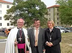 Bruno Platter (Former Grand Master of the Teutonic Order), Prof. Helmut Flachenecker (Director of the Research Centre), and Edda Weise, (Dean of the Protestant Church in Wuerzburg) at the inauguration of the Research Centre.