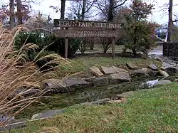 Fountain City Lake— commonly called the "Duck Pond"— remains one of Fountain City's most prominent features. Parks include Fountain City Park, located on the site of the old Fountain Head Campground, which consists of 12 acres (0.049 km2) situated along the small spring that feeds into First Creek, the Fountain City Ball Park (built in 1954), and the Fountain City Art Center (built originally as a library in 1964).
