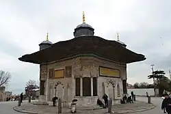 The Fountain of Sultan Ahmed III (Turkish: III. Ahmet Çeşmesi) is a fountain (specifically a sebil) in the great square in front of the Imperial Gate of Topkapı Palace in Istanbul, Turkey. It was built under Ottoman sultan Ahmed III in 1728, in the style of the Tulip period. It was a social centre and gathering place during the Ottoman period of Constantinople.