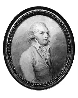 In his youth, he lived a dissipated life.[1] He first exhibited at the Royal Academy in 1778, built up a good practice and was praised by the critics. But he fell in with extravagant company and was forced to flee his creditors: so he eloped to Ireland with Elizabeth Gresse, wife of a fellow artist John Alexander Gresse (1741–1794).[1]