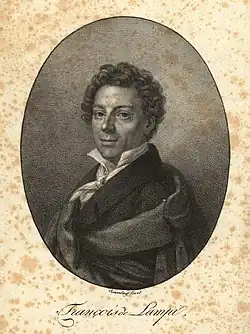 He was born in Klagenfurt, where his father worked on commissions for the Austrian court. He was the younger brother of Johann Baptist von Lampi (b.1775), also a portrait painter in the Lampi family; and was initially taught painting by his father,[1] before entering the Academy of Fine Arts Vienna in the studios of Hubert Maurer and Heinrich Füger.[4] When he was 15 years old, the Lampi family relocated to St. Petersburg in 1797 during the third and final partition of Poland, enticed by an extremely generous offer from the Tsar.[5] Estranged from his father, and disinherited, Franciszek Lampi left St. Petersburg at the age of 32 after the Napoleonic Wars, and settled in Warsaw a year later in 1815.[6][7] The already well-established reputation of his father in Poland as well as his own Polish childhood helped him blend into society.[4]