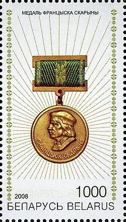 The Francysk Skaryna Medal (Belarusian: Медаль Францыска Скарыны) – is a state award in the Republic of Belarus. The medal differs from the Order of Francysk Skaryna, another state Belarusian award.