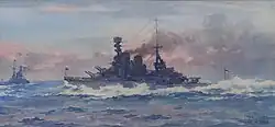 Alongside William Wyllie, Wood was invited to join the Grand Fleet Flagship HMS Queen Elizabeth and tour the surrendered German High Seas fleet at Scapa Flow in 1918.