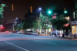 It is home to numerous coffee shops, restaurants, museums, bookshops, music stores and bars. The street in downtown Chapel Hill is notable for its nightlife, culture, and regular festivities.[1] The stretch of college-oriented businesses continues west into neighboring Carrboro, where the street's name changes to Main Street. Both streets are home to small music venues, like the Cat's Cradle and the Carrboro Arts Center, which were influential in the birth of Chapel Hill rock. UNC's Morehead Planetarium and Science Center, as well as the Ackland Art Museum, are also located in this area.