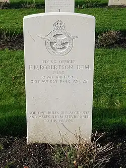 2. ^ a b "Stories: Flying Officer Frederick Neal Robertson DFM, 119881, RAFVR, 96 Squadron". Commonwealth War Graves Commission. Retrieved 31 December 2024.