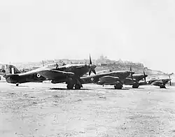 A line up of Hawker Hurricane fighters of No. 261 Squadron at Luqa, Malta