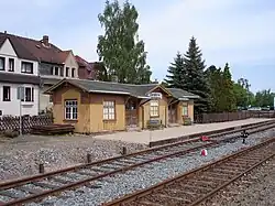 Petitions from Neubannewitz, Boderitz, and Cunnersdorf led to the Cunnersdorf (near Freital) halt (formerly Boderitz-Cunnersdorf) in 1908. It served Marienschacht mine commuters and Sunday excursionists to the Zur Prinzenhöhe dance hall. The wooden station building relocated from Dresden-Plauen in 1923, was restored in 2010 with sponsor funding.[22][23]