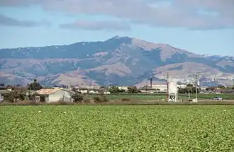 Fremont Peak or Frémont Peak,[3] historically known as Gabilán Peak, is a summit in the Gabilan Range, one of the mountain ranges paralleling California's central coast. The peak affords clear views of the Salinas Valley, Monterey Bay, the southern part of the Santa Clara Valley, and surrounding mountain ranges.[4] It is located on Rocky Ridge, 11 miles (18 km) northeast of Salinas, California.[5]