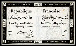 A kind of paper money was reintroduced by the Caisse d'Escompte in 1776 as actions au porteur, denominated in livres. These were issued until 1793, alongside assignats from 1789. Assignats were backed (in theory) by government-held land. Like the issues of the Banque Royale, their value plummeted.