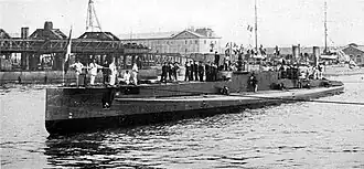 The French submarine Diane was the name boat of her class of two submarines built for the French Navy during World War I. Completed in 1917, the boat suffered an internal explosion in the Bay of Biscay off La Pallice, France, and sank with the loss of her entire crew of 43 in February 1918.[1]