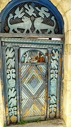 The museum is composed of a large courtyard. The walls of the courtyard were once covered with frescos and reliefs by Frenkel. However, only one relief has survived to the present day. The building which houses the art surrounds the Western and Northern section of the courtyard. The local architecture is evident in the entirety of the complex.