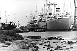 The Dresden was built in 1956/57 at the Warnow Shipyard. It was the fifth Type IV ship in the first batch of 10,000 tonne piece-goods freighters that were built in East Germany's shipyards after the Second World War. Because the first ship of this series was christened Frieden (commissioned in June 1957), the other ships of this series of 15 new vessels were classed as Frieden type merchant ships.