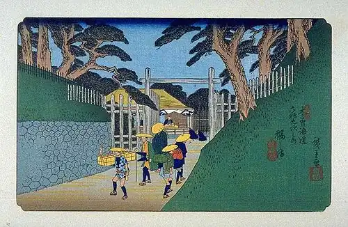 ![]() Utagawa Hiroshige's print of Fukushima-juku, part of the Sixty-nine Stations of the Kiso Kaidō series | |||||