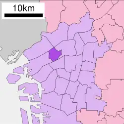 As of 1 August 2008, the ward has a population of 63,237,[1] and an area of 4.67 km2 (1.80 sq mi).[2] It is bordered by the Yodo River on the north, and the Dōjima River on the south.
