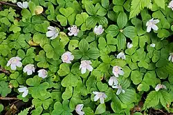 Pure hardwood stands (distinguishable communities of tree species within a forest)[25] account for 5.4% of the Fundy forest cover.[24] The most abundant pure hardwood stands are yellow birch (Betula alleghaniensis) and white birch (Betulla papyrifera).[24] There are also some sugar maple (Acer saccharum), red maple (Acer rubrum), and beech (Fagus) stands.[24] Carolina springbeauty (Claytonia caroliniana) and trout-lily (Erythronium americanum) bloom in the hardwood forest every year.[24]