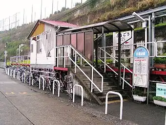 The station, which is unstaffed, consists of a side platform serving a single track. There is no station building. The shelter on the platform has a ticket window which is now unstaffed. An automatic ticket vending machine, a SUGOCA charge machine and a SUGOCA card reader are provided.[3][2]
