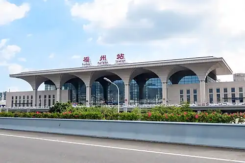 Fuzhou railway station (Chinese: 福州站; pinyin: Fúzhōu Zhàn, also spelled Fúzhōu Huǒchē Zhàn or Fuzhou Huochezhan) is a metro station and a railway station located in Fuzhou, Fujian Province, China, at the junction of the Wenzhou–Fuzhou railway, Nanping–Fuzhou railway, and Fuzhou–Xiamen railway which are operated by the Nanchang Railway Bureau of the China Railway Corporation.
