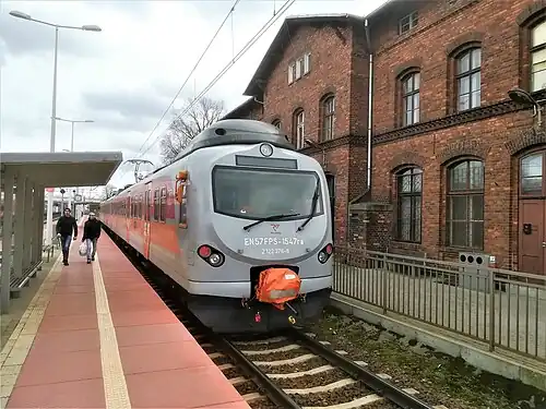 Gądki railway station is a railway station in Gądki, Greater Poland Voivodeship, Poland. The station is located on the Kluczbork–Poznań railway. The train services are operated by Przewozy Regionalne.