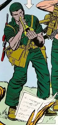 ![]() Gabe Jones as depicted in Sgt. Fury and his Howling Commandos #1 (May 1963). Art by Jack Kirby. | |