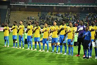 Gabon made their debut on 13 April 1960 by entering the first Friendship Games (Jeux de L'Amitié) tournament, created for French-speaking African countries (a precursor to the modern African Games), held in Antananarivo, Madagascar. In the First Round they were drawn against Upper Volta (now Burkina Faso), who were also making their debut, and lost 5–4, despite leading 3–2 at half-time.[3][4][5] They did not play another match for over a year and a half, until the next time the tournament was staged, in December 1961 in Abidjan, Ivory Coast.[3] They were drawn in Pool 3 alongside Cameroon and Senegal. Gabon began the tournament with a 3–2 defeat to Senegal on Christmas Day, before being thrashed 6–0 by Cameroon on Boxing Day, finishing bottom of their group.[6] A few months after the tournament, the Gabonese Football Federation (Federation Gabonaise de Football) was formed to officially oversee the development of the national team and the domestic game.[7] The new association would not have to wait long for their first win, as in their very next match on 14 July 1962 they defeated the Congo 3–1 in their first match on home soil. They played two more matches in 1962, a 1–1 home draw with Cameroon on 20 August, a vast improvement over their previous meeting, and a 3–1 away defeat to the Congo on 16 September, before entering the third and final Friendship Games held in April 1963 in Dakar, Senegal.[3] They were drawn in Group C, along with British Gambia, the France amateur team, and Upper Volta. They opened on 12 April with a strong 4–0 win over Upper Volta, but were comfortably beaten 3–0 by the French amateurs two days later. They drew their final game 2–2 with British Gambia on 16 April and finished second in the group, a marked improvement over their previous two appearances at the tournament; however only the group winners progressed and therefore Gabon were eliminated.[8] A few months later, Gabon entered qualification for the 1966 FIFA World Cup held in England. However, on 8 October 1964 they withdrew from the competition, along with all the other African entrants, in protest at FIFA's decision to only award one finals place to all of Africa, Asia and Oceania.[9][10]